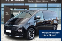 Klimatyzacja automatyczna trzystrefowaKanały nawiewu powietrza w drugim i trzecim rzędziFunkcja automatycznego odparowywania szybCyfrowe zegary z 10,25” kolorowym wyświetlaczemElektrochromatyczne lusterko wsteczneInteligentny tempomat z funkcją StopGoWybór trybów jazdyŁopatki do zmiany biegówAsystent monitorowania martwego pola (BCA), asystent ostrzegania o ruchu poprzecznym (RCCA)Asystent utrzymywania pasa ruchu (LKA), monitorowanie uwagi kierowcy (DAW), informowanie o odjechaniu poprzedzającego pojazdu (LVDA)Asystent unikania kolizji czołowych (FCA) z wykrywaniem pieszych i rowerzystów oraz z funkcją Junction TurningSystem monitorowania ciśnienia w oponachInteligentny asystent ostrzegania o ograniczeniach prędkości (ISLA)Ogranicznik prędkościPrzednie i tylne czujniki parkowaniaSystem kamer 360°Podążanie na pasie ruchu (LFA)Asystent jazdy autostradowej (HDA)Czujnik deszczuSystem monitorowania tylnej kanapy (RSA) z czujnikami ultradźwiękowymiSystem wyświetlający widok z martwego pola (BVM)Przesuwane drzwi w drugim rzędzie otwierane elektrycznie (z prawej i lewej strony)Inteligentna klapa bagażnika (z regulacją prędkości i wysokości otwierania)Żaluzje przeciwsłoneczne w tylnych drzwiachGniazdo 12VŁadowarka bezprzewodowa do smartfonówSystem multimedialny z 10,25” ekranem dotykowym, cyfrowym radiem DAB, nawigacja z usługami Hyundai LIVE i system telematyczny Bluelink, łączność Android Auto i Apple Car PlaySystem Premium Audio BOSE (11 głośników + subwoofer)Podgląd na ekranie nawigacji na tylne siedzeniaInterkom z funkcją komunikacji dwustronnej pomiędzy kierowcą i pasażeramiSystem ratunkowy eCallBezkluczykowy dostępImmobilizerCentralny zamek, alarm